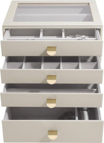 прямоугольная, искусственная кожа, цвет бежевый, 32 отделения, стеклянная крышка