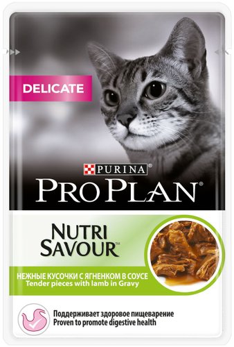 | Ингредиенты | мясо и продукты переработки мяса (в том числе ягненок 4%), экстракты растительного белка, рыба и продукты переработки рыбы, аминокислоты, продукты переработки растительного сырья, минеральные вещества, растительные масла и животные жиры, загустители, различные сахара, целлюлоза, витамины, красители |