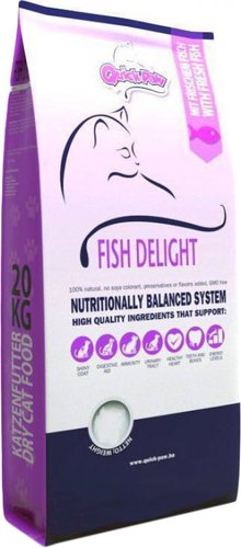 | Ингредиенты | Свежая рыба, рыбный гидролизат, рыбий жир, рыбная мука, крупы, хлорид калия, мононатрийфосфат, монокальцийфосфат, таурин, селенит натрия, йодид кальция, сульфат железа, пентагидрат сульфата меди, сульфат марганца, сульфат цинка, ретинолфелин ацетат, витамин К, фолиевая кислота, ниацин, пантотенат кальция, рибофлавин, витамин B12, тиамин, гидрохлорид пиридоксина, биотин, L-карнитин, таурин, антиоксиданты. |