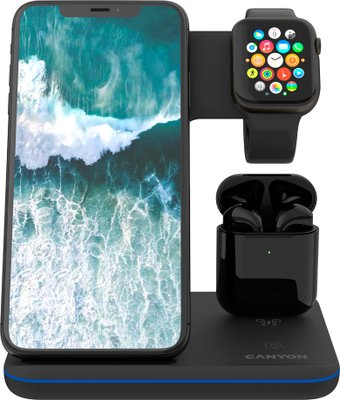беспроводное зарядное/док-станция для телефонов/для наушников/для умных часов и/или браслетов, USB Type-C, 15 Вт, быстрая зарядка, кабель microUSB/кабель Lightning, 1.2 м