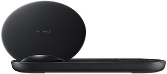 Заряжает без проблем S9+, S8, Gear S3 frontier и Gear Sport. Думаю, с зарядкой другой техники Samsung проблем не будет.Достоинства: Одновременная зарядка двух телефонов или телефона с часами. Сделана из приятных материалов.