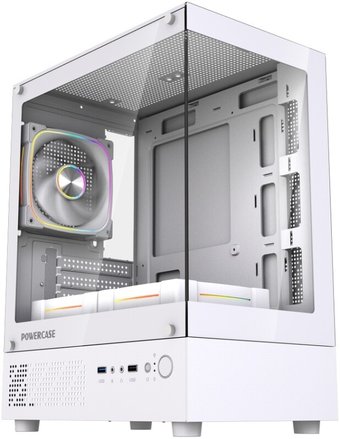 Mini Tower, БП отсутствует, для плат micro-ATX/mini-ITX, с 3 вентиляторами в комплекте, окно: закаленное стекло, видеокарта до 285 мм, охлаждение ЦП до 155 мм, без пылевых фильтров, 1xUSB 2.0, 1xUSB-A 3.2 5Гбит/с, цвет белый
