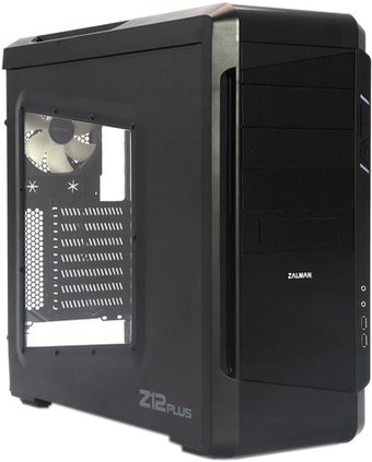 Отличный широкий корпус с хорошо продуманной системой вентиляции, тремя кулерами, подсветкой и пылевым фильтром спереди. Вентиляционные решетки находятся спереди, сверху, снизу и сзади. Есть дополнительные отверстия для установки 3 дополнительных вентиляторов: на дне, сверху и сзади. В боковой крышке корпуса отверстие, закрытое прозрачным пластиком (на фото его прекрасно видно). Так вот, при желании и умелых рыках это отверстие можно модифицировать как угодно: сделать в нём решетку, установить систему охлаждения и т.д. и т.п. В общем решение в абсолютной степени более удачное, чем металлическая решетка или и вовсе глухая стена.Чуть не забыл: на корпусе сверху переключатель для двух режимов работы вентиляторов: сильный и слабый. Сам корпус широкий - влез толстый куллер Macho, а это показатель. 4 USB выходя на корпусе: 2xUSB2.0 спереди и 2xUSB3.0 среху.