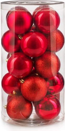 елочная игрушка (набор 20 шт), шар, цвет красный, диаметр 8 см