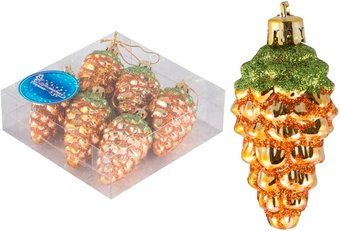 елочная игрушка (набор 6 шт), шишки, цвет золотистый, длина 6 см