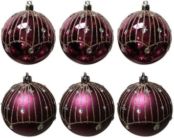 елочная игрушка (набор 6 шт), шар, цвет сиреневый, диаметр 6 см