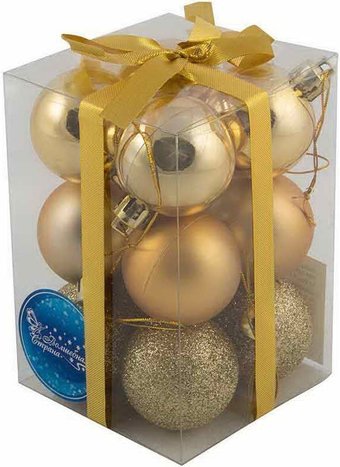елочная игрушка (набор 12 шт), шар, цвет золотистый, диаметр 4 см