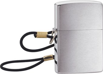 Описание Классическая зажигалка Zippo со шнуром, отделка - "матовый хром" (Brushed Chrome). | |