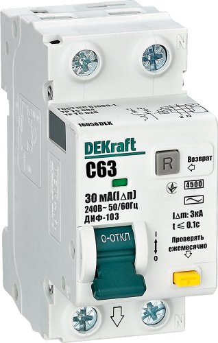 6 А, 1P+N, кривая тока: C, ном. отключающая способность 4.5 кА, тип дифф. тока AC, ток утечки 30 мА