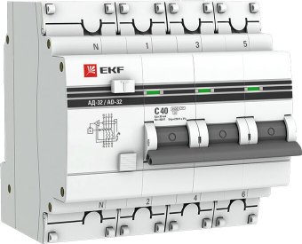 40 А, 3P+N, кривая тока: C, ном. отключающая способность 4.5 кА, тип дифф. тока AC, ток утечки 30 мА
