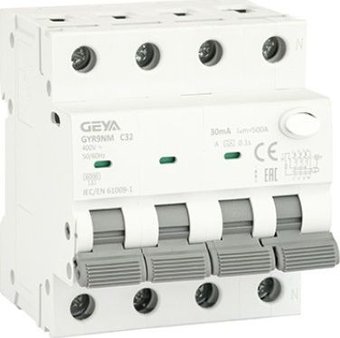 Описание GEYA - Дифф. авт. выключатель GYR9NM-C32-30mA, 3P+N, 32A, хар-ка C, 6 kA, 30mA, тип A, 4M - Артикул: GYR9NM3PC32A30 | |