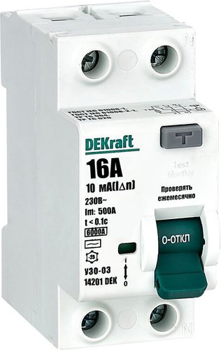 16 А, 2P, ном. отключающая способность 6 кА, тип дифф. тока AC, ток утечки 10 мА