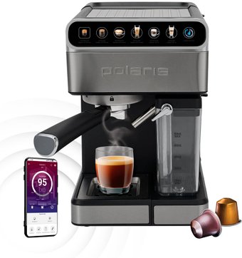 Описание Рожковая бойлерная кофеварка Polaris PCM 1540 Wi-Fi IQ Home - это уникальное устройство, которое позволяет вам наслаждаться великолепными молочно-кофейными напитками всего лишь одним касанием. Благодаря своей универсальности, она с легкостью работает с капсулами Nespresso и Dolce-Gusto, а также с молотым кофе. | |