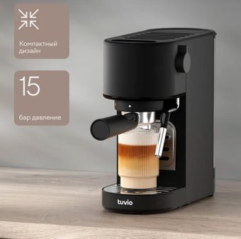 Описание ✅ Кофеварка Tuvio TCM01EM идеально подходит для любителей классического кофе, включая эспрессо и американо, в обычном и двойном объёме. Удобная сенсорная панель управления позволяет легко настроить объём и тип напитка, а также активировать подачу пара для взбивания молока. | |