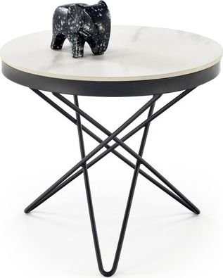 журнальный столик, 600x600 мм, высота 550 мм, материал: мрамор (столешница), металл/сталь (опоры), белый