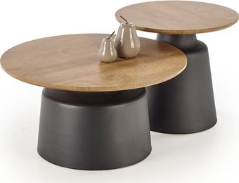 журнальный столик, набор 2 шт, 700x700 мм, высота 360 мм, материал: МДФ (столешница), металл (опоры), черный