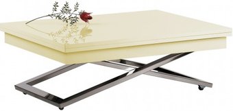 стол-трансформер, с колесами, 1010x800 мм, высота 360 мм, в разложенном виде 2020x800x760 мм, материал: ЛДСП (столешница), хромированная сталь (опоры), бежевый