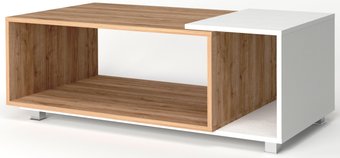 журнальный столик, 1100x610 мм, высота 410 мм, материал: ЛДСП (столешница), хромированная сталь/ЛДСП (опоры), бежевый/белый/коричневый