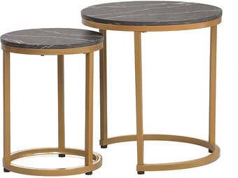 журнальный столик, набор 2 шт, 450x450 мм, высота 480 мм, материал: мрамор (столешница), окрашенная сталь (опоры), черный