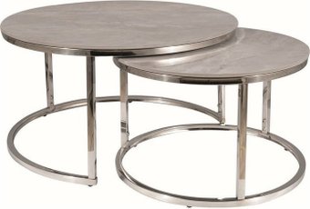 журнальный столик, набор 2 шт, 600x600 мм, высота 450 мм, материал: керамика (столешница), сталь (опоры), серый