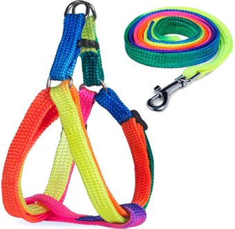 шлея с поводком, для собак/для кошек, 1.2 м, диаметр 10 мм, нейлон/металл, 320 г, многоцветный