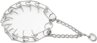 Описание Строгий ошейник Каскад Classic для собак (с вертлюгом) 4мм. Этот строгий ошейник изготовлен из металлических нержавеющих звеньев, соединённых между собой в конструкцию в форме гибкой металлической цепочки из 10-ти съемных звеньев с шипами на внутренней стороне. Звенья снимаются и устанавливаются обратно без особых усилий и без применения специальных инструментов. Парфорс стягивается по принципу удавки и оказывает удушающие действия на шею собаки при подтяжке или рывке поводка. Цепочка, стягивающая парфорс, имеет вертлюг. Диаметр прутка, из которого изготовлен ошейник - 4 мм. Длина ошейника - 70 см. | |