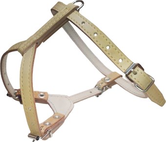шлея, для собак, обхват ошейника 35-50 см, ширина ошейника 20 мм, обхват груди 58-66 см, кожа, бежевый