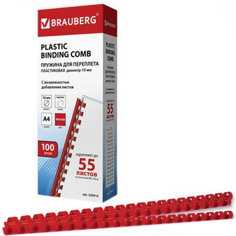 A4, цвет красный, 100 шт в упаковке, 10 мм, 55 сшиваемых листов