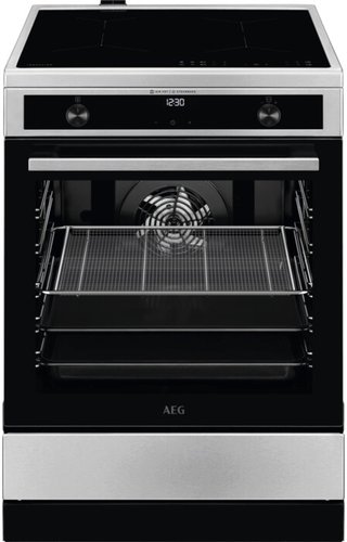индукционная панель + электрический духовой шкаф, поверхность: cтеклокерамика, энергопотребление A, управление механическое, таймер электронный, размеры (ШхГхВ): 59.6x60x85 см, цвет серебристый/черный