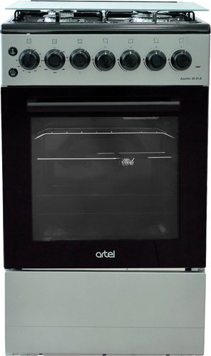 газовая панель + электрический духовой шкаф, газ-контроль конфорок, поверхность: эмалированная сталь, крышка из закалённого стекла, энергопотребление A, управление механическое, таймер механический, размеры (ШхГхВ): 50x60x85 см, цвет серый