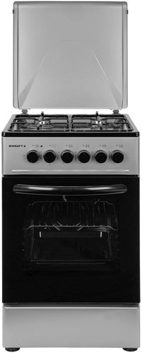 газовая панель + электрический духовой шкаф, поверхность: нержавеющая сталь, крышка из нержавеющей стали, управление механическое, таймер механический, размеры (ШхГхВ): 50x55x85.5 см, цвет серебристый