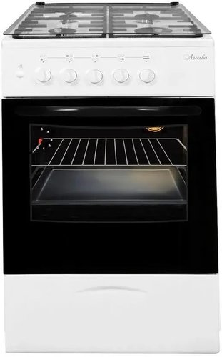 газовая панель + газовый духовой шкаф, поверхность: эмалированная сталь, крышка из закалённого стекла, управление механическое, без таймера, размеры (ШхГхВ): 50x60x85 см, цвет белый