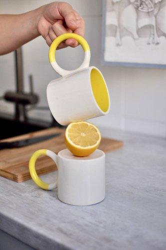 чашка, материал: полуфарфор, цвет: белый/желтый, объем: 350 мл