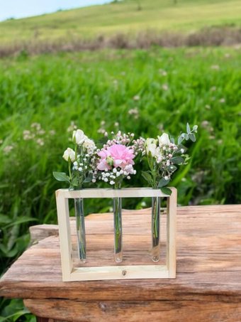 Описание ✅ Оригинальная деревянная ваза со стеклянными колбами для цветов и сухоцветов это отличная замена обычным вазам из стекла и керамики. | |