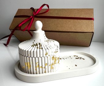 Описание ✅ Подарочный набор Gentle Art - это декоративный набор из гипса, который включает в себя белую шкатулку и овальный поднос с золотым декором. | |