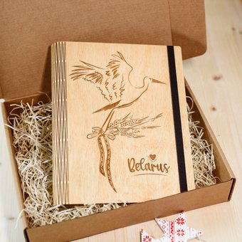 Описание ✅ Блокнот-книга формата А5 с обложкой Аист с луговыми цветами. | |