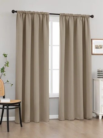 200 х 250 см, для жилой комнаты, бежевый/песочный, крепление крючки/кольца/тесьма, блэкаут