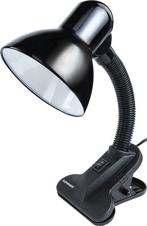 Описание Для светильника высотой 30 см подходит любая технология бытовых ламп (накаливания, люминисцентная, светодиодная) с цоколем Е27, благодаря чему можно самостоятельно выбрать яркость и оттенок света. При использовании лампы накаливания, максимальная мощность не должна превышать 40 Вт. Корпус из пластика представлен в предельно простом черно-белом дизайне, благодаря которому он гармонично впишется в офисный или домашний интерьер. Лампа крепиться с помощью прищепки. | |