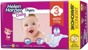 подгузники, для мальчика/для девочки, 4–9 кг, универсальные, 70 шт.