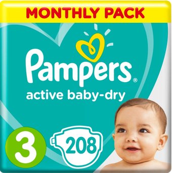 подгузники, для мальчика/для девочки, 6–10 кг, для активных детей, 208 шт.