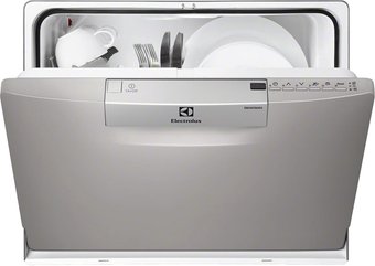 загрузка на 6 комплектов посуды, электронное управление, 6 программ, серебристый цвет, сушка: стандартная (конденсация), индикация на полу: нет