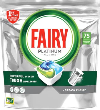 Описание Высокотехнологичные капсулы: жидкая формула Fairy ADW отмывает посуду настолько эффективно, что одновременно удаляет грязь и жир с фильтра посудомоечной машины. Fairy Platinum - наилучший результат очищения посуды | |