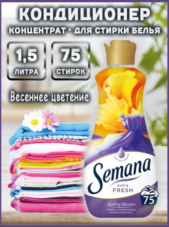 Описание ✅ Парфюмированный жидкий кондиционер для белья Semana Весеннее цветение — это премиум средство, которое сделает вашу стирку настоящим удовольствием, наполняя вещи стойким и изысканным ароматом. | |