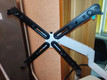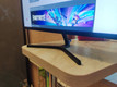 Единственный для меня был минус это то, что VESA-крепления нет, но я купил адаптер, который позволяет повесить монитор на кронштейн — на последнем фото видно (всё чёрное — это он).