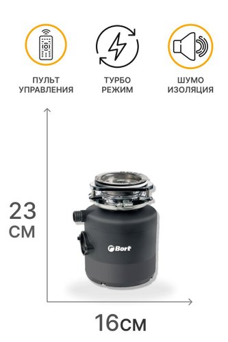электрический, индукционный двигатель, 0.75 л.с., 560 Вт, 2200 об/мин, управление: дистанционная кнопка, камера 1.1 л, пластик, 3-ступенчатое измельчение, непрерывная загрузка, с защитой от перегрузок, 54 дБ
