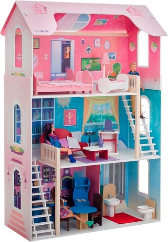 | Комплектация | - Кукольный дом - 16 аксессуаров: раковина, унитаз (крышка поднимается), круглый обеденный стол, 2 классических стула, кухонная плита (дверца духового шкафа открывается), кухонная мойка (боковые дверцы гарнитура открываются), диван, журнальный столик, открытый шкафчик, часы, настольная лампа, 2 большие кровати для кукол, колыбель, торшер. - Инструкция по сборке. |