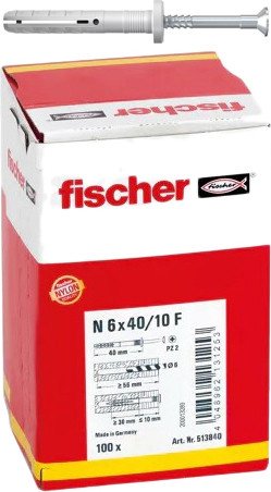 Описание ✅ Дюбель-гвоздь Fischer N 6 x 40/10 F 513840 (100 шт) с цилиндрическим бортиком. | |