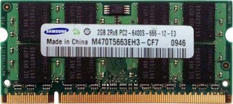2 ГБ, 1 модуль DDR2 SO-DIMM, частота 800 МГц, CL 6T, тайминги 6-6-6, напряжение 1.8 В