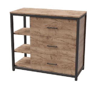 для жилой комнаты, каркас ЛДСП+металл, фасад ЛДСП, 3 ящика, 3 полки, 100x45x90 см