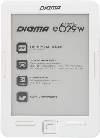 экран 6" E-Ink Carta HD, 758 x 1024, память 4 Гб, карты памяти